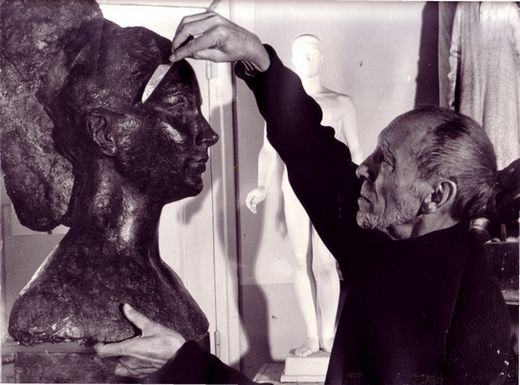 Gérard Choain en train de sculpter le buste d''Elisabeth Taylor